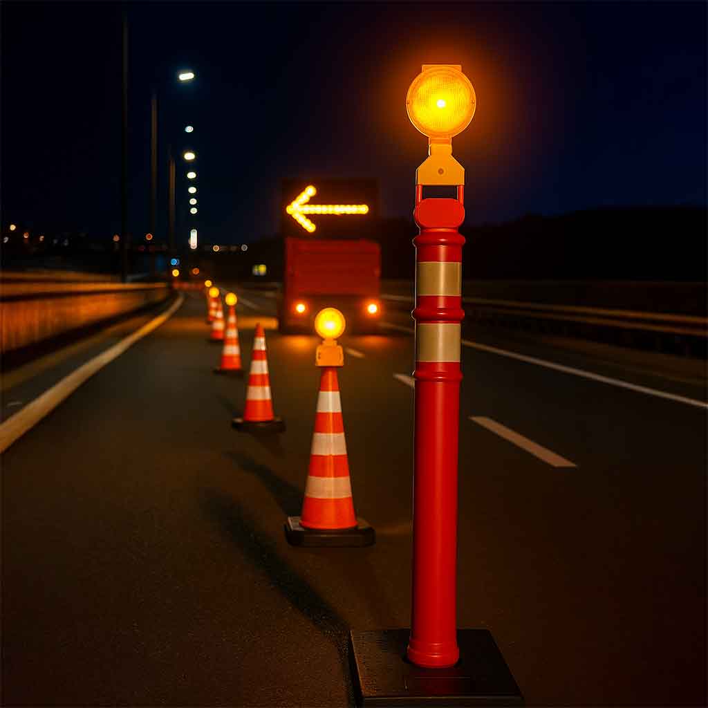La baliza con soporte es una solución práctica y eficiente para señalizar zonas de riesgo, delimitar áreas de trabajo o reforzar la seguridad en espacios al aire libre.